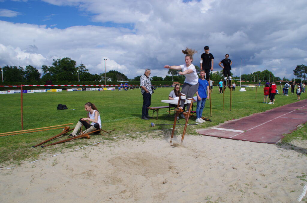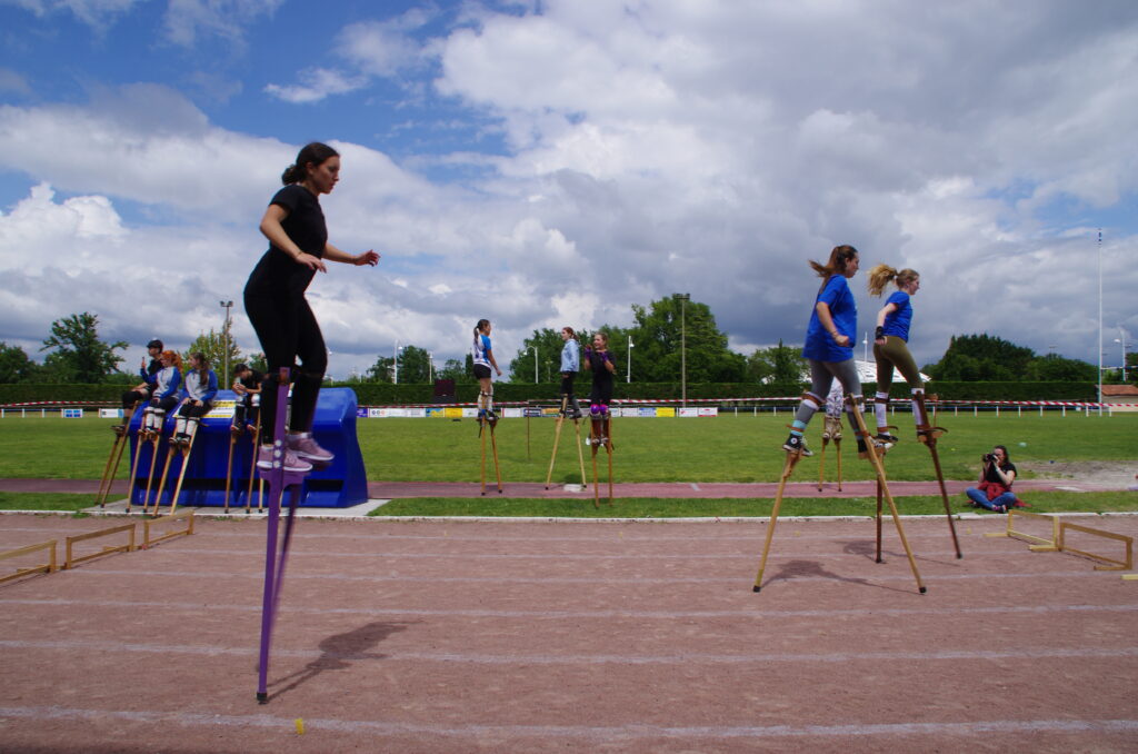 Pendant près de 6 heures de compétitions, les échassiers se sont affrontés sur des épreuves spectaculaires, directement inspirées de l’athlétisme classique… mais adaptées à la hauteur et à l’équilibre :